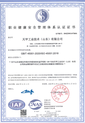 职业健康安全管理体系认证证书